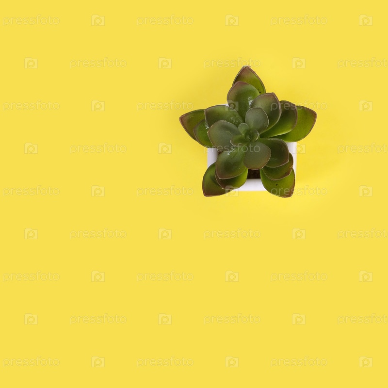 Ботаническая копия суккулентов в белом горшке, изолированная на желтом фоне