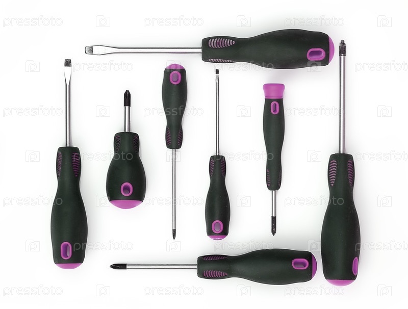 Ручные инструменты для ремонта и установки: отвертка выделена на белом фоне