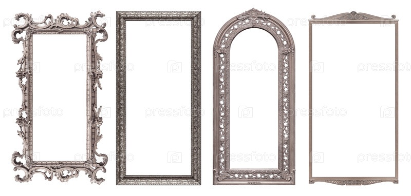 Набор серебряных рамок для картин, зеркал или фотографий, изолированных на белом фоне