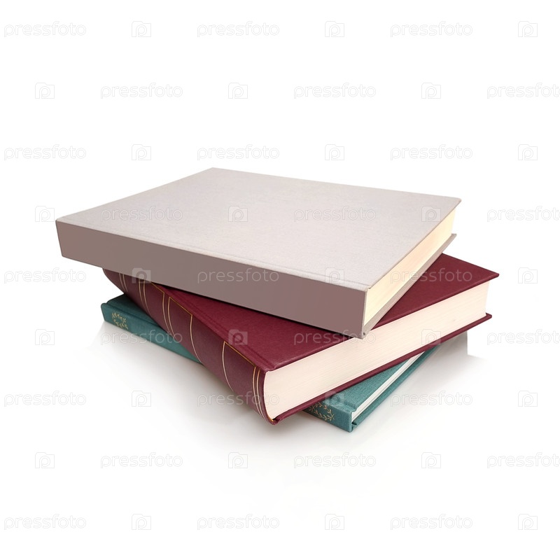 Куча книг в цветных обложках с белыми листами, изолированными на белом фоне