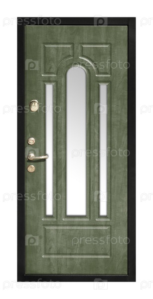 Модель металлических входных дверей, изолированная на белом фоне