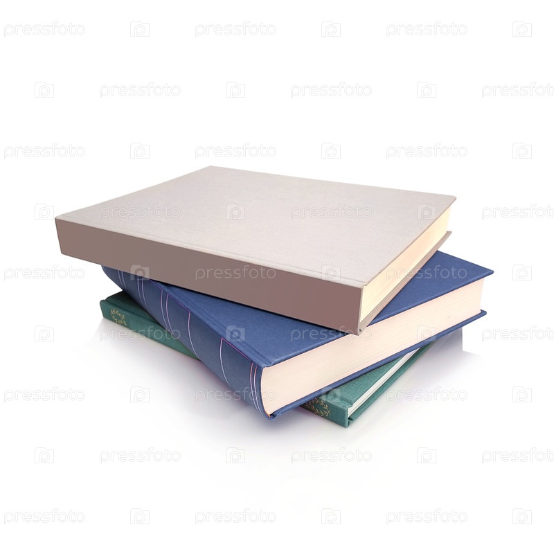 Куча книг в цветных обложках с белыми листами, изолированными на белом фоне