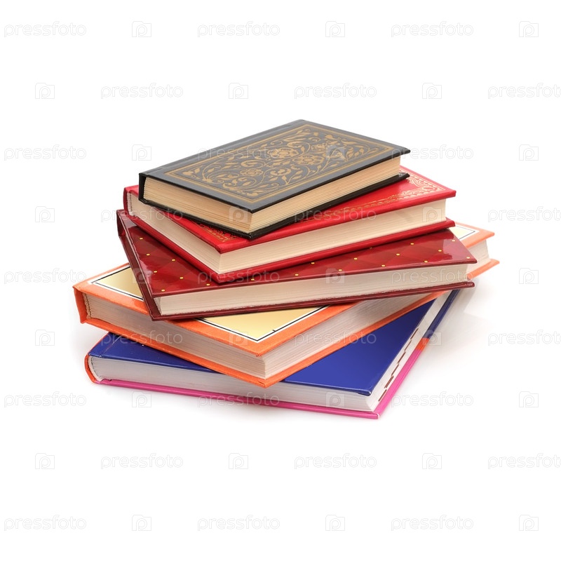 Куча книг в цветных обложках с белыми листами, изолированными на белом фоне