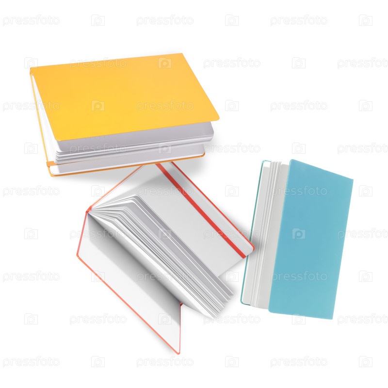Летающие книги в цветных обложках с белыми листами, изолированными на белом фоне