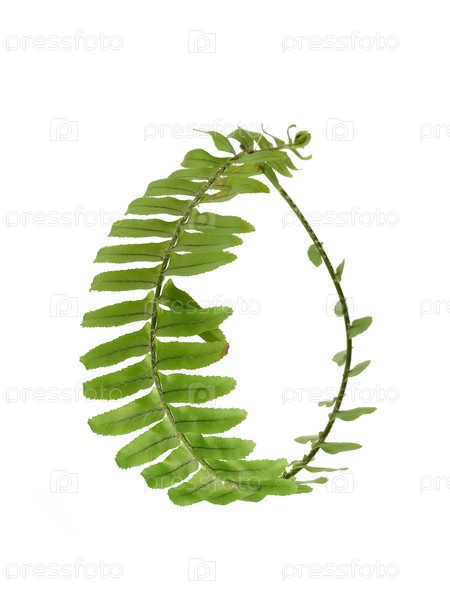 Зеленая ветвь папоротника, связанная в круг, изолирована на белом фоне, элемент цветочного дизайна, резка готова. очень высокое разрешение