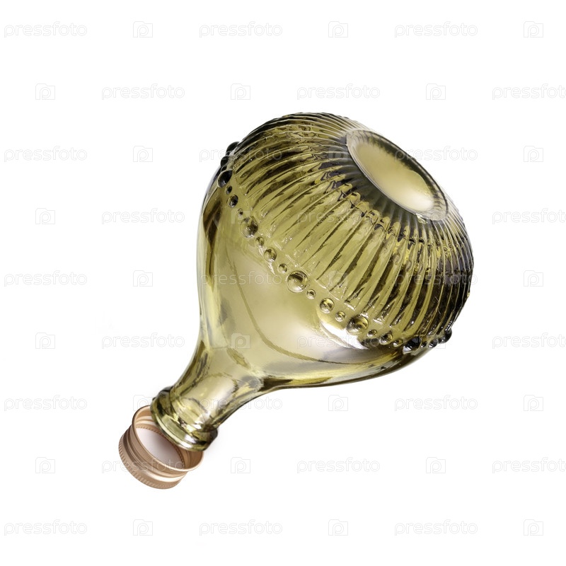 Положение бутылки с парфюмом со стеклянной испытательной палочкой на белом фоне
