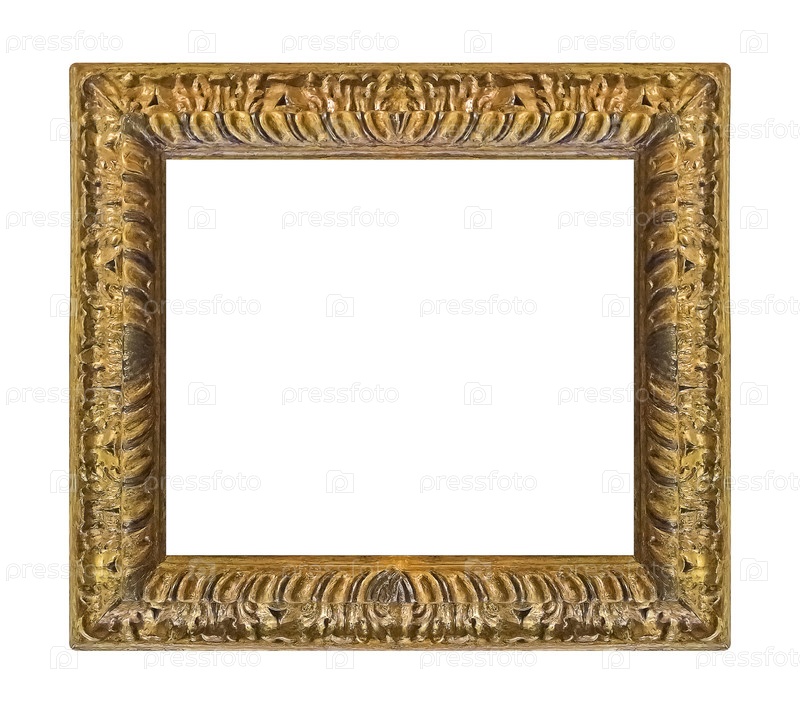 Золотая рама для картин, зеркал или фотографий, изолированных на белом фоне