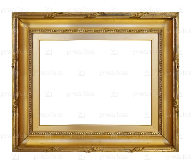 Золотая рама для картин, зеркал или фотографий, изолированных на белом фоне