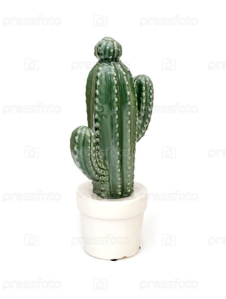 Керамический кактус, изолированный на белом фоне