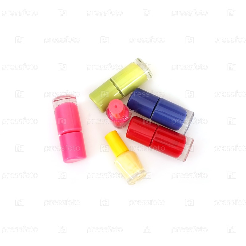 Бутылки с лаком для ногтей изолированы на белом фоне