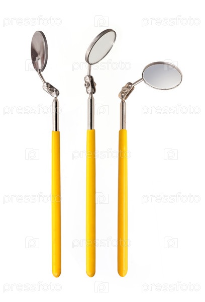 Техническое зеркало с ручкой, изолированной на белом фоне