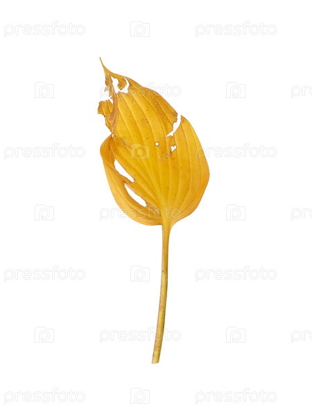 Один желтый лист хосты изолирован на белом фоне, вырез готов. очень высокое разрешение
