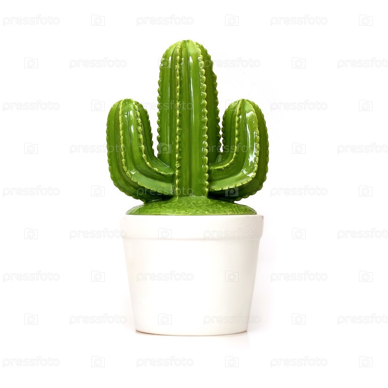 Керамический кактус, изолированный на белом фоне