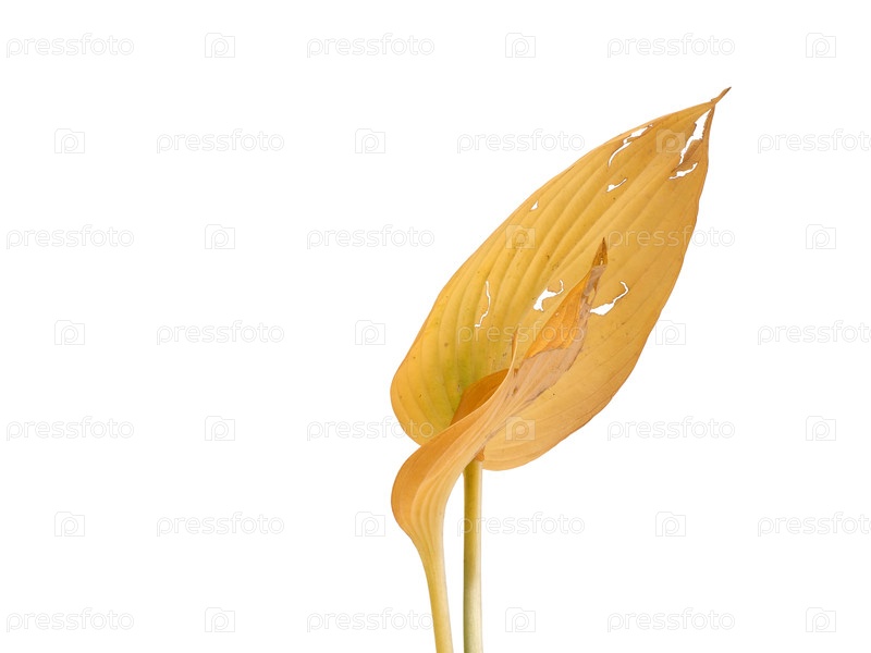 Закройте два перекрывающихся желтоватых листа Hosta, изолированных на белом фоне и вырез готов