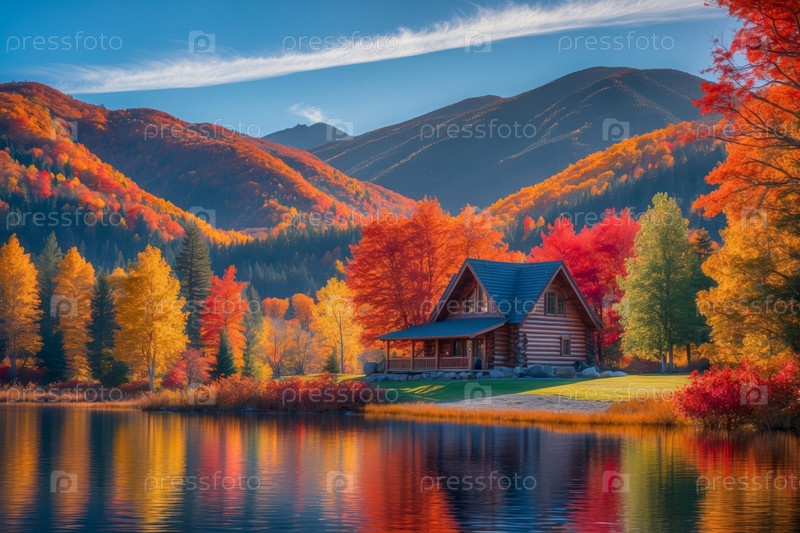 Домашний ландшафтный фон красно-желтого листа осеннего лесного парка AI Generative