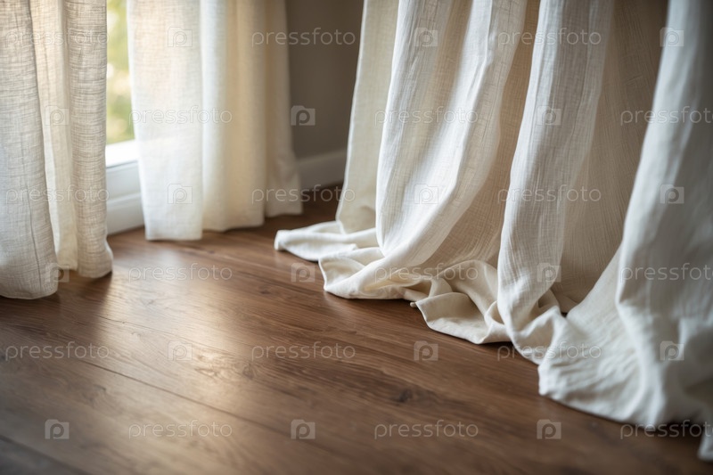 Белые шторы висят на окне, а не прозрачные занавески в интерьере квартиры