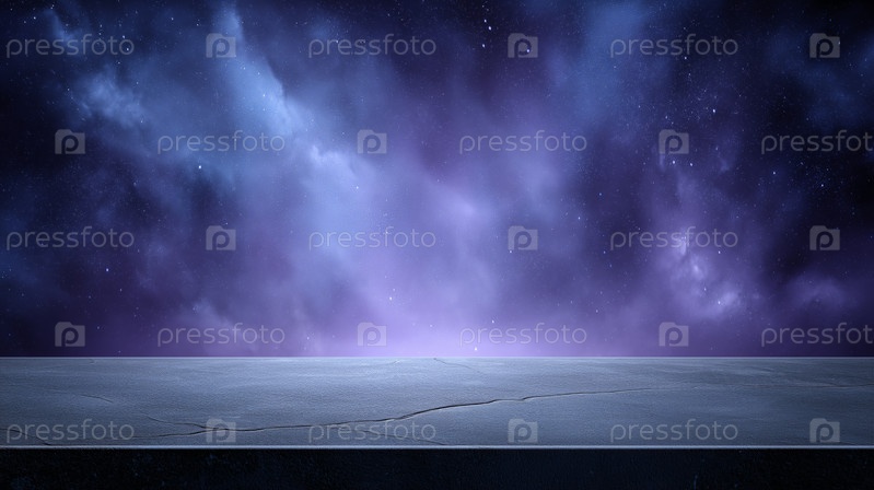 Сломанная бетонная поверхность с фиолетовым космическим фоном и звездами
