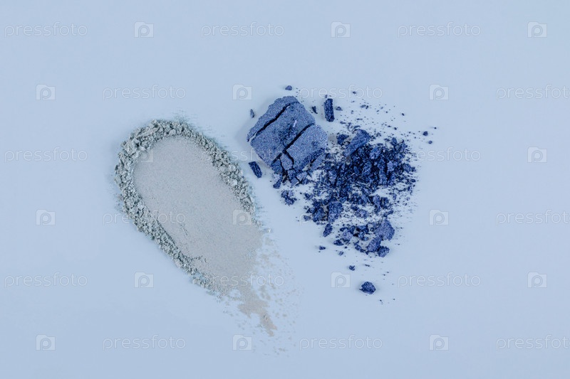 Мягкие голубые тени и нарушенные тень темно-синего цвета. различные текстуры теневых глаз. шаблон для рекламы вашего продукта. вид сверху