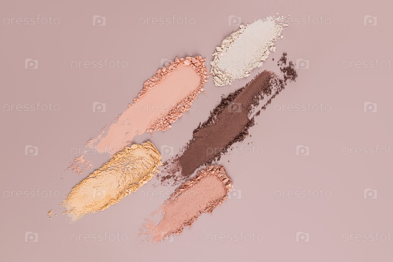 Красивые образцы сухих теней декоративной косметики на бежевом фоне
