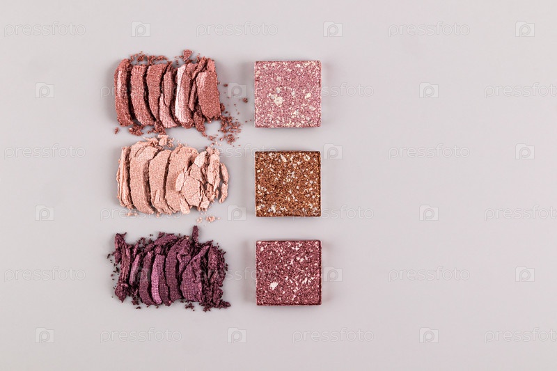 Три великолепных образца нежирной тени для глаз и квадратные образцы пополнения с деликатными цветами на белом фоне
