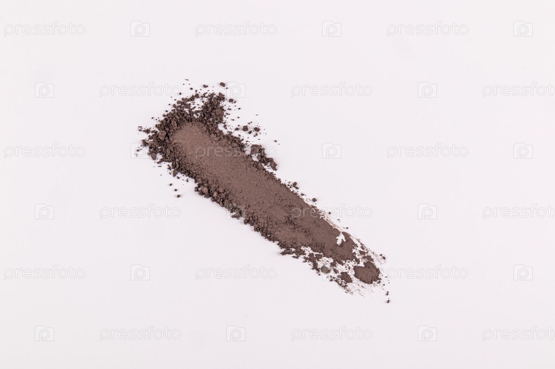 Прямой длинный образец коричневого сухого оттенка для глаз или темного компактного порошка. Образец декоративной косметики. Вид сверху. Копировальное пространство. Шаблон текстуры тени