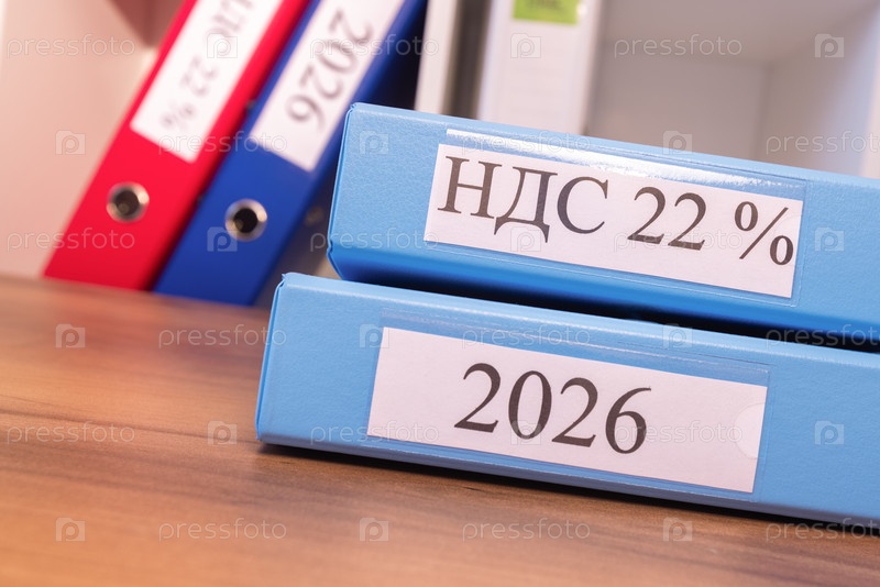 офисные папки на столе бухгалтерии. россия 2026. ндс 22%