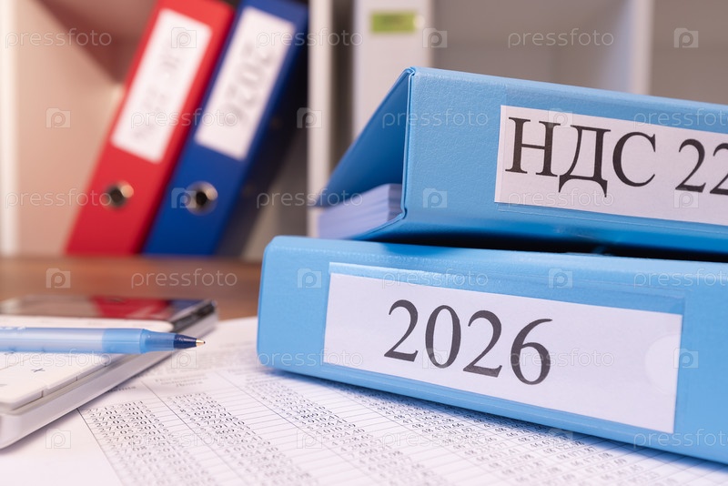 Документация, калькулятор и офисные папки на столе. Россия 2026