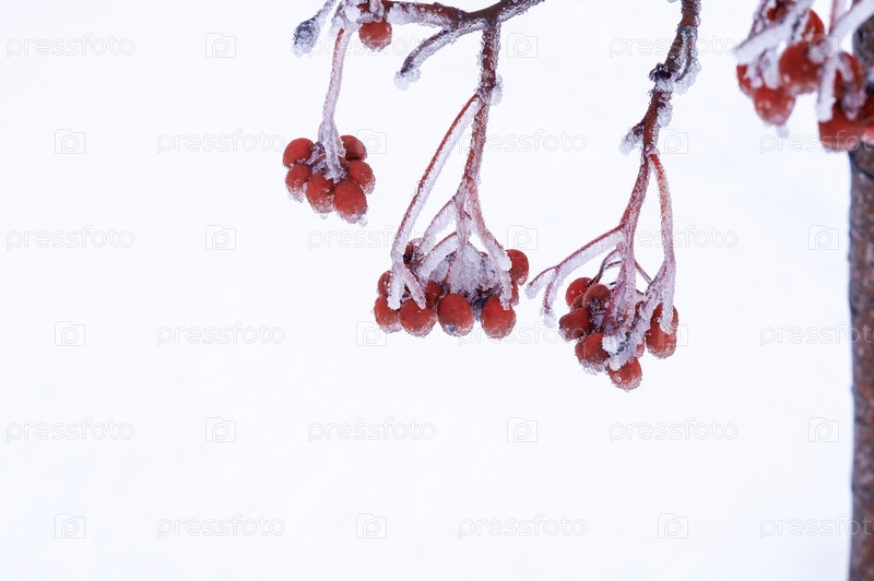 Красный пепел, покрытый морозом - ягоды вблизи