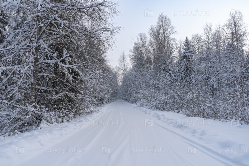 Снежная дорога в зимнем лесу