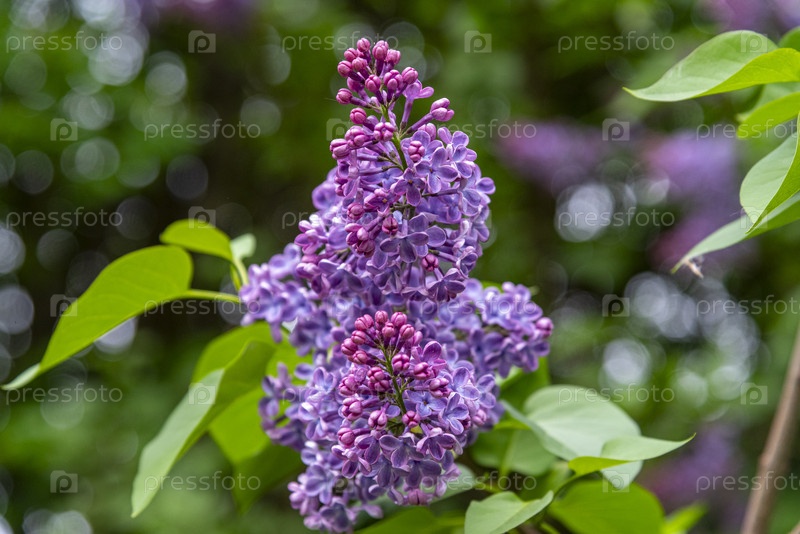 Яркие лиловые цветы распускаются среди пышной зелени