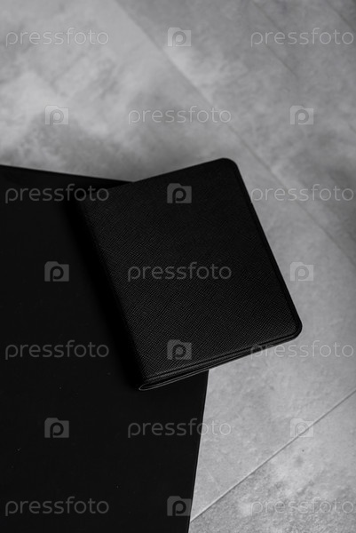Черный кошелек из искусственной кожи на черном фоне