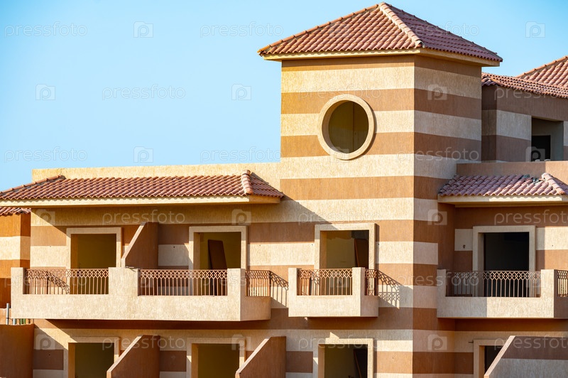 Дом в коричневых тонах на фоне синего неба