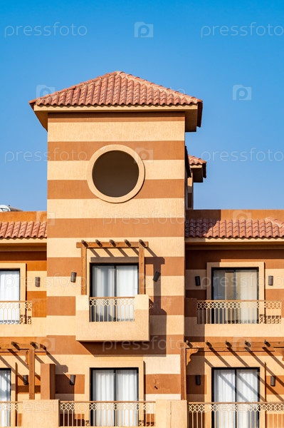 Дом в коричневых тонах на фоне синего неба