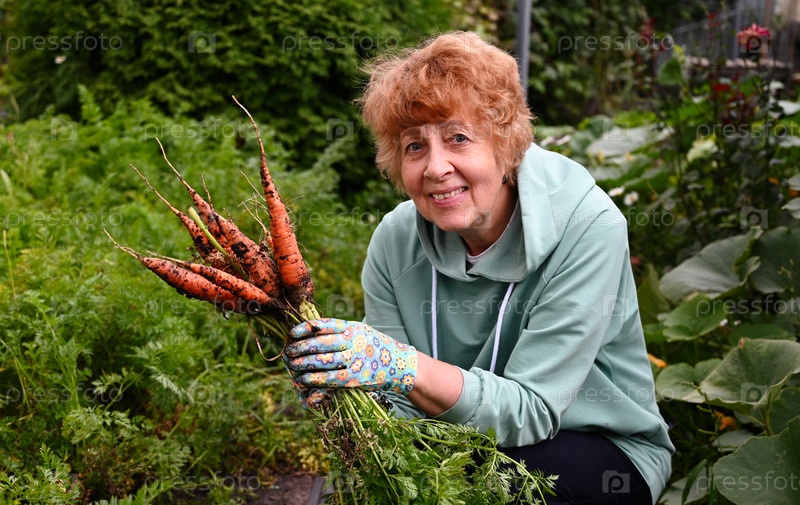 Фермер собирает свежие органические моркови из сада лопатой