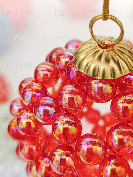 Элегантный рождественский мяч ручной работы, сделанный из красных бусин. макро и обрезанная фотография