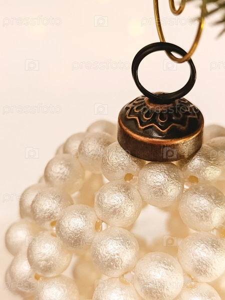 Элегантный рождественский шар, сделанный вручную из белых бусин. макро и обрезанная фотография