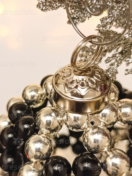 Элегантный рождественский мяч ручной работы, сделанный из черных и серебряных бусин. макрообразные и обрезанная фотография