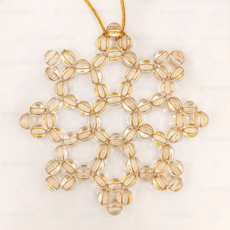 Элегантная рождественская снежинка, сделанная вручную из коричневых прозрачных бусин