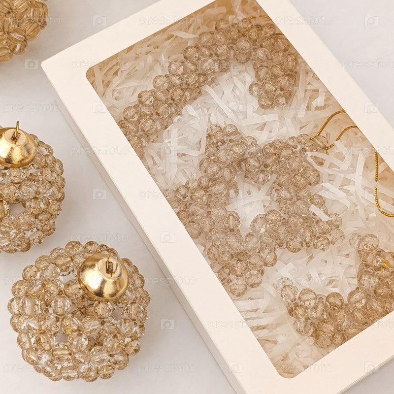 Элегантное рождественское украшение ручной работы из коричневых прозрачных бусин с коробкой для подарков