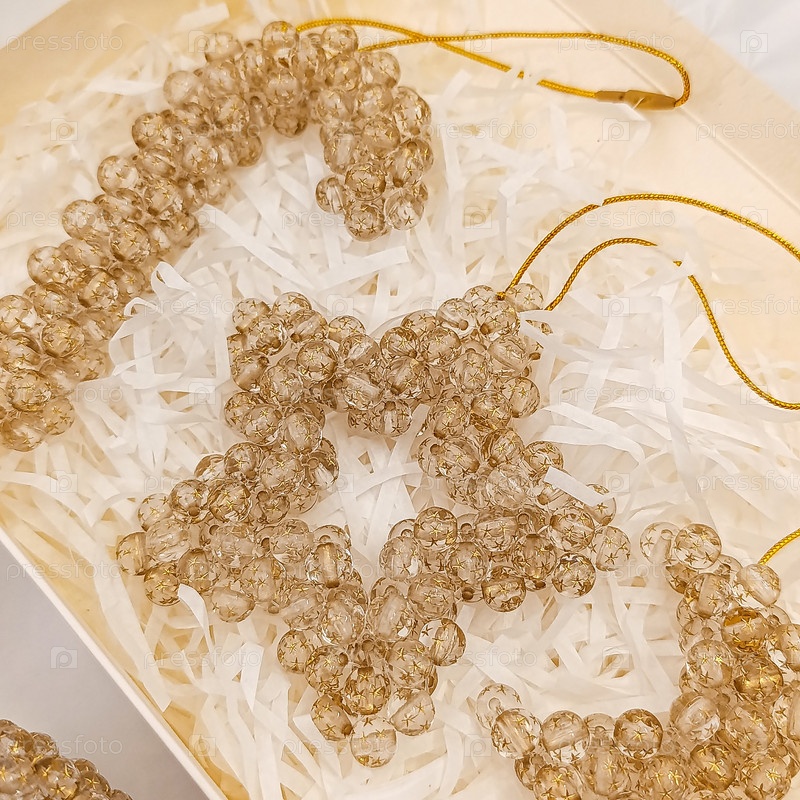 Элегантное рождественское украшение ручной работы из коричневых прозрачных бусин с коробкой для подарков