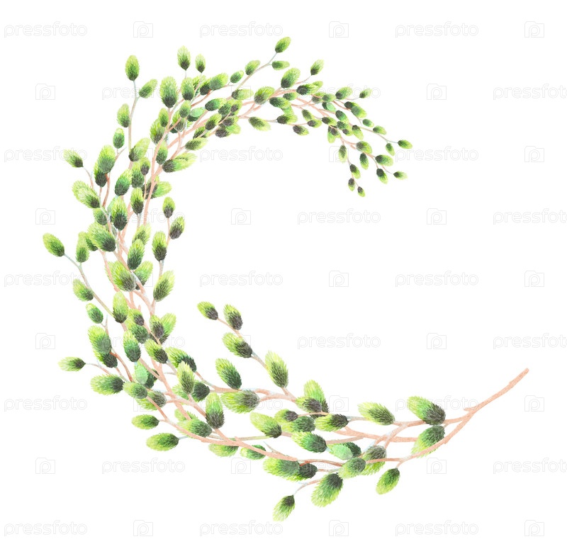 Дивизия пасхальной ивы. Иллюстрация акварели. Для ткани, обоев, упаковочной бумаги, поздравительных открыток, дизайна, декора и иллюстрации