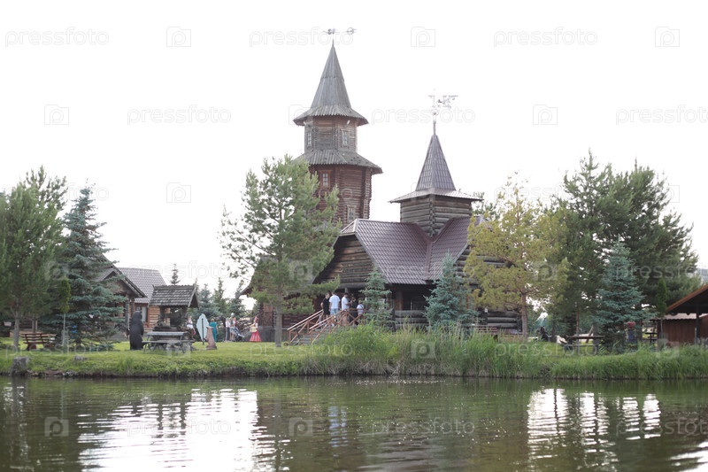 Комплекс деревянной архитектуры в старом русском стиле, расположенный в ландшафтном парке