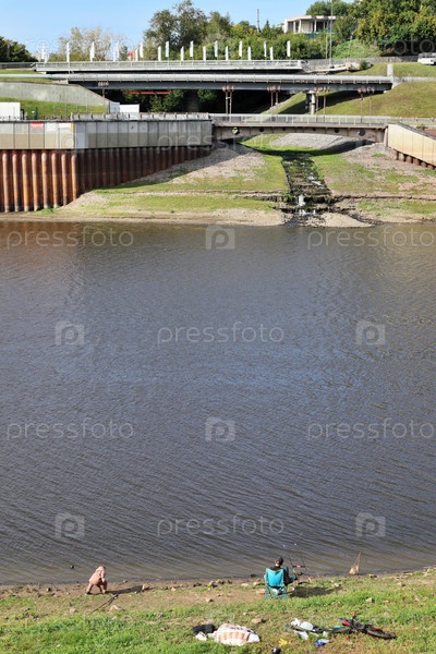 Рыбаки, ловя рыбу у реки Туры