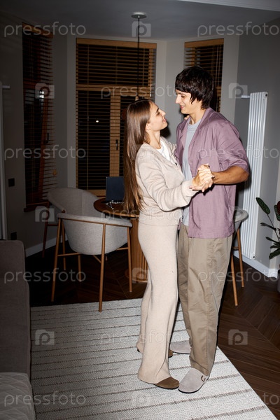 Молодая женщина и молодой мужчина танцуют вместе в помещении