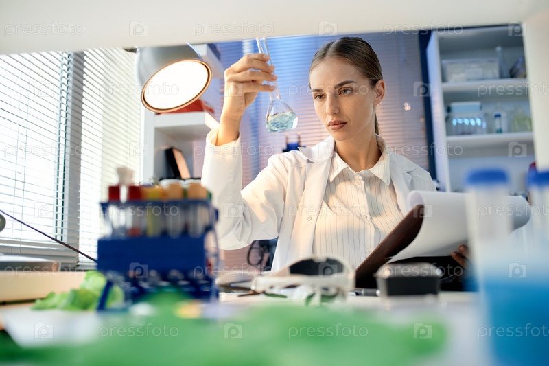 Молодая взрослая женщина проводит научный эксперимент в лаборатории