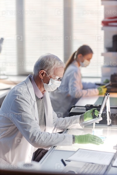 Старший человек, проводящий научные исследования в лабораторных условиях
