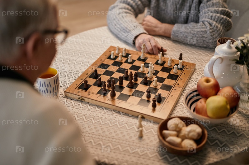 Мужчина и женщина-старший играют в шахматы в доме престарелых