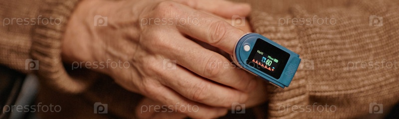 Глава старшей женщины, отслеживающей уровень кислорода в крови с помощью пульсоксиметра