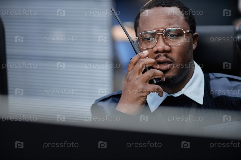 Портрет чернокожего мужчины среднего возраста, управляющего операциями безопасности с помощью прослушки