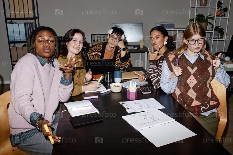 Разнообразная группа молодых взрослых сотрудничает во время креативного офисного совещания